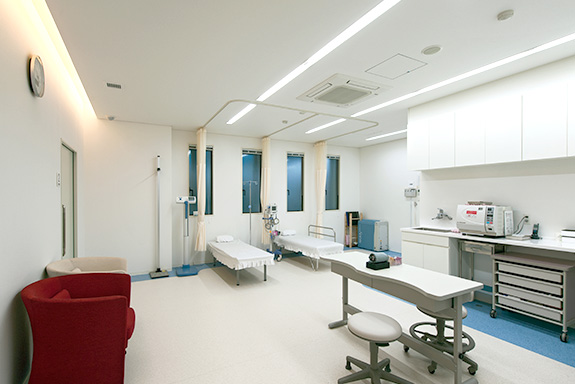 バリアフリーはもちろんのこと、車椅子の貸し出しや障害者用トイレを用意し、高齢者や身体に障害がある方にも安心して来院いただけます。雨の日は車の乗り降りで濡れることのないように、玄関の軒下を広くしています。