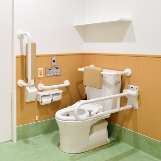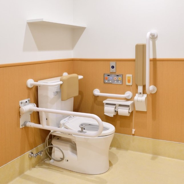 身体が不自由な方ほどトイレに時間がかかります。障害者用トイレを9室ご用意しており、